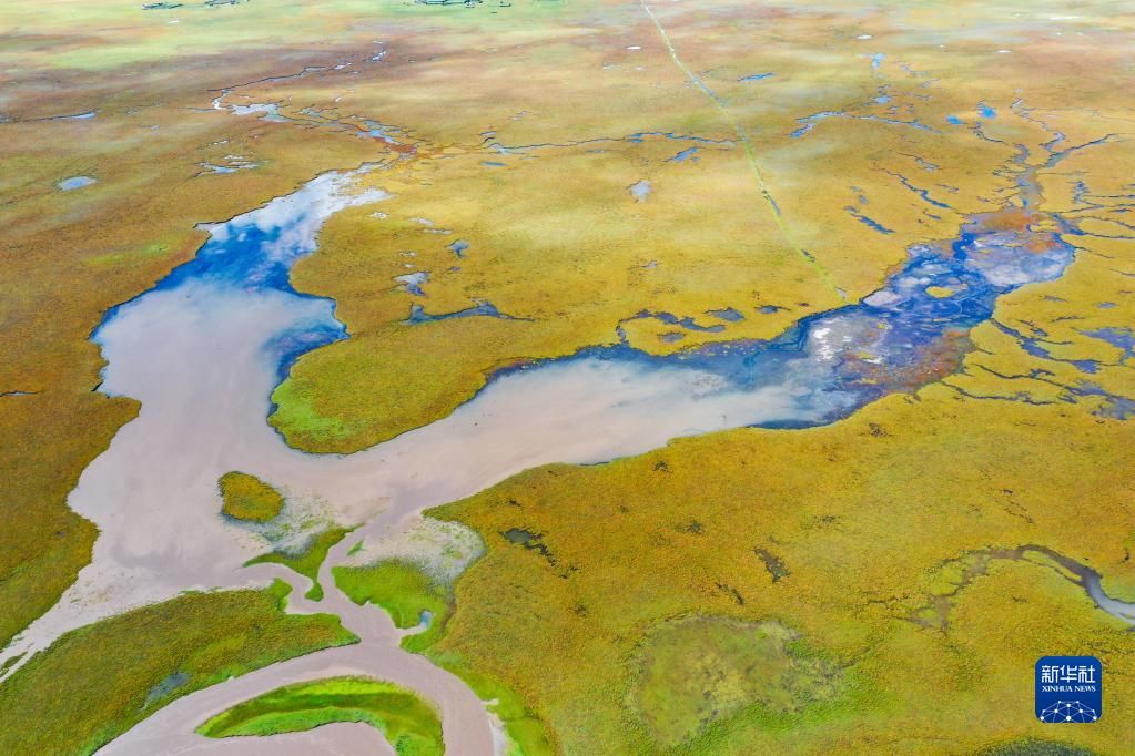 这是玛曲县阿万仓湿地内的一处沼泽(9月17日摄,无人机照片)。 甘肃省甘南藏族自治州玛曲县地处青藏高原东部边缘,境内天然草原、沼泽湿地分布广,是黄河上游重要的水源涵养区、补给区。 受自然和人为因素的影响,上世纪八九十年代,玛曲草原出现不同程度沙化退化现象,水源涵养能力下降。 玛曲县通过实施退牧还草、沙化退化草原综合治理、湿地保护与修复、山水林田湖草沙一体化生态修复治理、草原鼠害防控等一系列生态保护工程项目,全力推动黄河上游生态保护和高质量发展。目前,玛曲县生态环境明显改善,玛曲草原向黄河补给水源的能力进一步提高。 新华社记者 郎兵兵 摄
